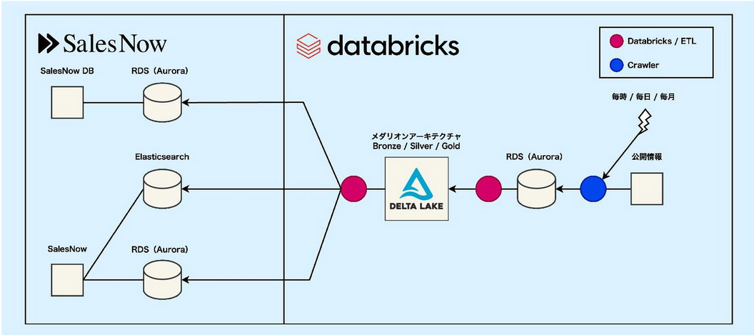 SalesNowのデータ基盤は、クローラにScrapy、処理基盤にDatabricksを利用しています。 法的・技術的に認められる範囲で、公開情報となるWebページをクローリングし、乱雑な文字列データを構造化してデータベースに格納しています。