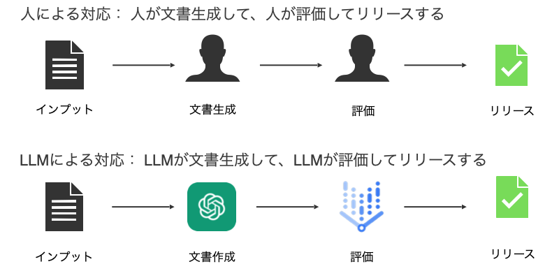 今回の検証では、文書生成をChatGPT、品質評価をGoogle PaLM2に置き換えました。